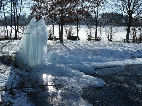 Was Sie hier sehen, ist die gefrorene Fontaine am Badeteich.