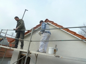 04. Dezember 2011 - Das schlechte Wetter konnte den Helferinnen und Helfern, die das DRK-Häuschen und den Jungendraum renovieren, nicht abhalten. Am Samstag wurde der Edelputz von außen am Jugendraum aufgetragen. Ein Dank an alle Helfern denen das "Sauwetter" egal war und die dafür sorgten, dass der Jugendraum vor dem Wintereinbruch noch verputzt wurde. (sw/mh)