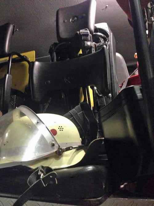 Sitzplatz im Feuerwehrfahrzeug mit Atemschutzausrüstung