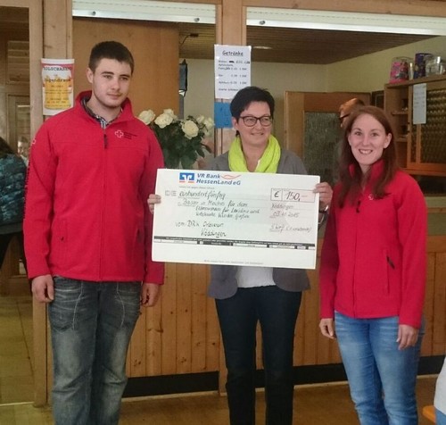 11.10.2015 – Im Rahmen des am 03. Oktober stattgefundenen Basars im DGH Meiches überreichte das DRK Köddingen eine Spende in Höhe von € 150,-. Der Basar fand 2011 das erste Mal statt und erzielte damals einen beeindruckenden Erlös in Höhe von € 8.900,-. Nicht einmal die Initiatorin Marion Jöckel hätte mit einem solch guten Ergebnis gerechnet. Dieses Jahr wollte sie an den Erfolg anknüpfen und konnte ihn sogar deutlich steigern. Unter anderem Dank der Spende des DRK Köddingen kamen knapp € 15.000 für den guten Zweck zusammen. Respekt!!!