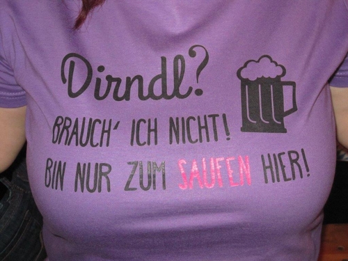 Wer kein Dirndl oder Lederhose hatte, kam mit einem T-Shirt mit Spruch als Ersatz.