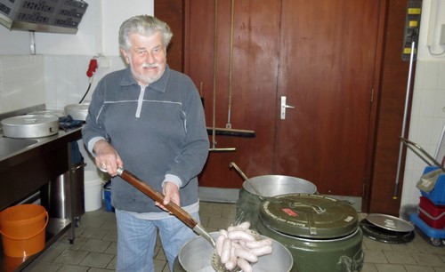 19.01.2015 - Am Sonntag dem 11.01.15 veranstaltete der Singkreis Köddingen sein alljährliches Schlachtessen. Dazu wurde eigens ein Schwein geschlachtet und die Köstlichkeiten bereits vorbereitet. Außer diversen Fleischsorten wurden noch Blutwürstchen sowie Kartoffelwürstchen hergestellt. Dazu gab es Bauernbrot, Kartoffeln, Meerrettich und die altbekannte Vogelsberger „Sauer Brieh“. Wer davon noch nicht statt wurde konnte sich noch an einem reichlichen Kuchenbuffet bedienen. Das Gemeinschaftshaus war bis auf den letzten Platz gefüllt. Außerdem wurden noch viele Portionen nach Hause geholt, so dass man von einem gelungen Fest sprechen kann. Die schlechte Nachricht: Der Singkreis wird zukünftig kein Schlachtessen mehr ausrichten. Die gute Nachricht: Die Feuerwehr wird diese Veranstaltung übernehmen. Und so bleibt es in Köddingen dabei: Alle Jahre wieder schlachten wir ein Schwein.