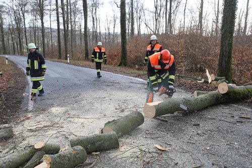 Die FF Köddingen hat im Anschluss noch in Eigenverantwortung einen Baum am Köddinger DGH zerlegt, der ebenfalls durch den Sturm Eberhard umgeworfen worden war.