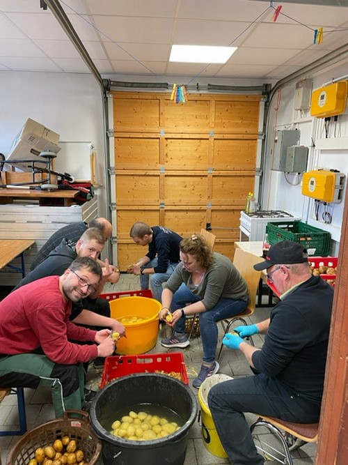 19.01.2019 - Am letzten Sonntag hielt die Feuerwehr Köddingen das traditionelle Schlachtessen im DGH Köddingen ab. Nachdem man bereits am Samstag über 70 Kilo Kartoffeln und Zwiebeln geschält hatte und alle weiteren Arbeiten wie Tische stellen und Getränke holen erledigt waren, ging es am Sonntag bereits in aller Frühe los. Ab 7:30 traf man sich, denn es musste das Kraut gewaschen, die Kartoffeln gekocht und vor allem die oberhessische Spezialität, die Sauer Brüh, vorbereitet werden. Ab 11 Uhr sollte schließlich gegessen werden. Nachdem gegen 14 Uhr über 180 Portionen an den Mann und die Frau gebracht wurden, gab es direkt noch Kaffee und Kuchen. Nach Beendigung aller Arbeiten war man sich einig. Das Schlachtessen war ein voller Erfolg.
