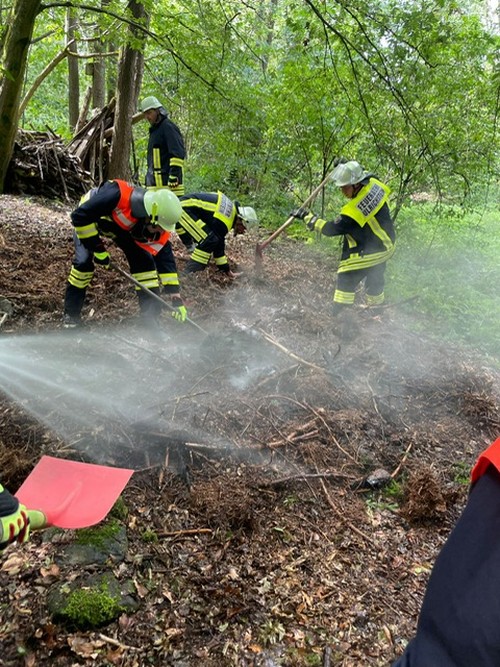 Update: Die FF Köddingen wurde in diesem Fall mit der FF Helpershain sozusagen überörtlich alarmiert, da die Alarm- und Ausrückordnung bei dem Einsatzstichwort "F Wald 1", also Feuer im Wald" bei der Alarmierung der Helpershainer Wehr auch die gleichzeitige Alarmierung der FF Köddingen vorsieht. Die FF Köddingen traf auch zeitgleich mit der FF Helpershain an der Einsatzstelle ein. Während die FF Helpershain mittels Kübelspritze und Feuerlöschern den Erstangriff durchführten, baute die mit 17 Einsatzkräften besetzte Köddinger Wehr die Wasserversorgung auf. Durch die beteiligten Wehren wurde der sehr aufgeheizte Waldboden gewässert und somit auch gekühlt.