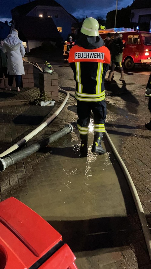 Anerkennungsprämien und Brandschutzehrenabzeichen wurden für einige Kameraden ebenfalls, losgelöst von dem Ereignis, vergeben. Knapp vier Wochen später fand das Bezirksfeuerwehrfest statt, dessen Umsetzung aufgrund des Hochwassers zunächst offen war. Es wurde jedoch abgehalten und es entpuppte sich als Höhepunkt des Jahres, so Wehrführer Merkel. Über die Gemeindegrenzen hinaus habe man sich gut repräsentiert. In Verbindung mit der 750-Jahrfeier des Ortes, wurde über drei Tage ein erfolgreiches Fest ausgerichtet. Der Samstag gestaltete sich mit einer Großübung der Feldataler Wehren, den Wehren aus Meiches, Helpershain, Ulrichstein und dem DRK OV Köddingen. Das Interesse sei aufgrund hoher Zuschauerzahlen sehr groß gewesen. Auch der Festumzug am Sonntag mit 40 Zugnummern und über 600 Teilnehmern spreche für sich.